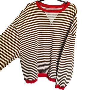 Free People NWT Classic Striped Oversized Crewneck Sweatshirt Brown Red Size XL