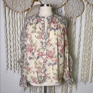 Free People NWT Mara Floral Printed Long Sleeve Button Down Blouse Size M