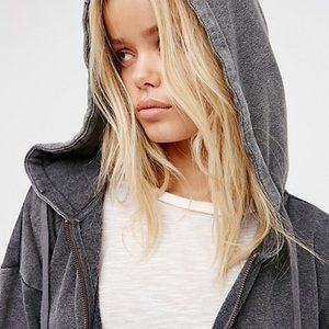 Free People NWT Medium When Worlds Meet Hoodie Jacket Washed Black Grey Hooded