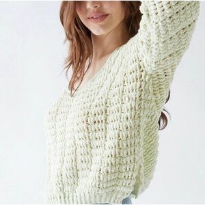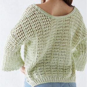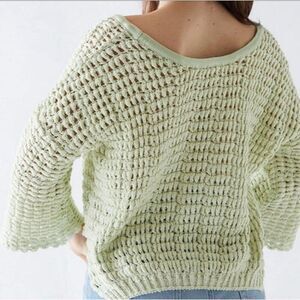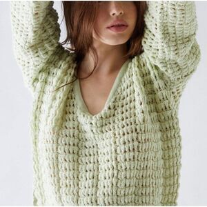Free People NWT Women Sugared Mint Chunky Sleeve Crochet Knit Pullover Sweater Top