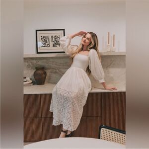 Smocked square neck lined eyelet dress