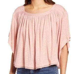 NWT $68 Free People Sunsetter Linen Blend Tee Strawberry Smoothie Roomy Crop Top