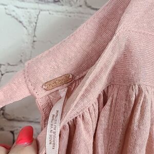 Free People NWT Pink Linen Oversized Tee Strawberry Crop Top Bow Tie Back Blouse