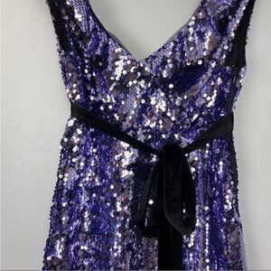 Free People NWT Sequin Purple & Black Siren Mini Dress Plunging Neckline- Size 2