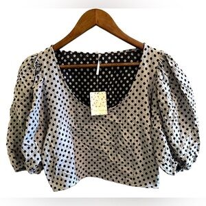 Free People NWT Summer Polka Dot Puff Sleeve Blouse in Blue Sz 2