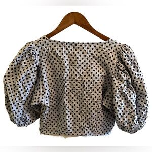 Free People Polka Puff Sleeve Blouse. Designed in the perfect puff sleeve style, this timeless top is featured in a classic polka dot print and cropped silhouette for a forever flattering fit from season to season. Scoop neckline. Cropped silhouette. Exaggerated sleeve detail. 100% Polyester. Machine wash. Imported.