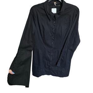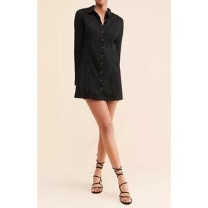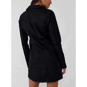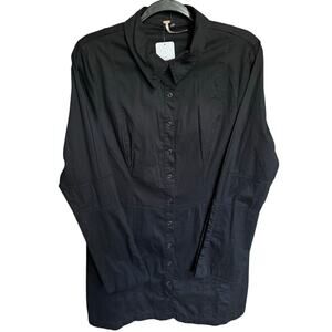 Free People NWT Thea Button Front Dress A Line Collared Shirt Mini Black Size XL