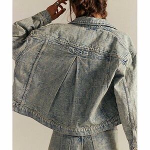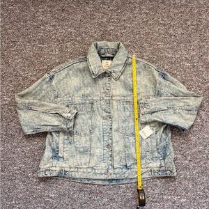 Free People NWT We the Free Jacquard Letters denim Jacket Loose Baggy Fit Medium