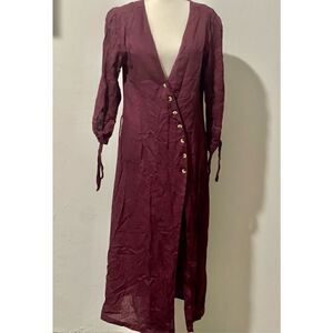 Free people Zappora midi endless summer button down wrap Boho formal dress 3/4 sleeve, gauzy fabric,beautiful light dress