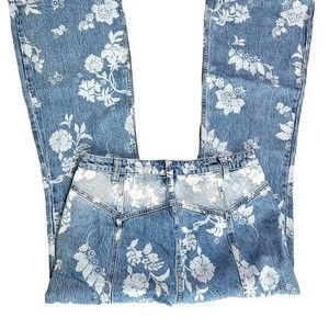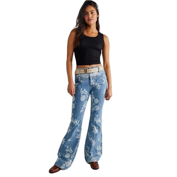 Free People Naomi Printed Floral Flare High Rise Jeans Inseam 32 Rise 13
