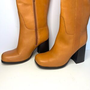 Ultra sleek and super classic, these handmade, wear-with-everything leather boots come in a bold, tall design with a chunky block heel for a sky-high style that’ll become your new wardrobe staple.