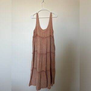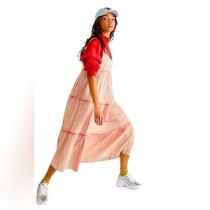 Free People Natalie Midi Maxi Dress Tier Ruffle Clay Shell Distress Gauzy