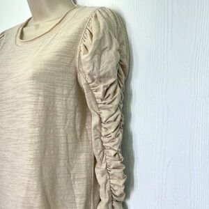 Free People - Natasha Cream Crewneck Ruched Long Sleeve Crew Neck Top Size XS