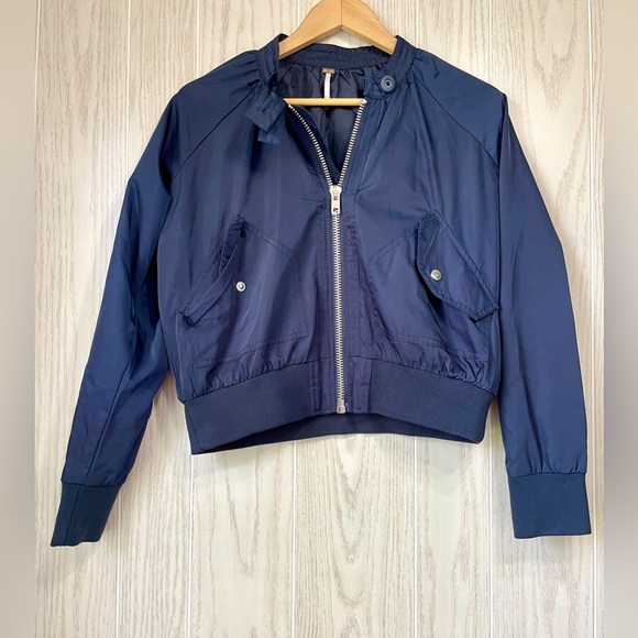 Free People Navy Blue Bomber Jacket Size XS EUC