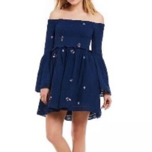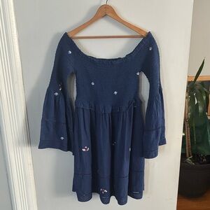 Free People Navy Blue Counting Daises Embroidered Dress Sz Medium