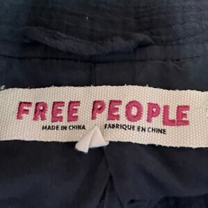 Free People Navy Blue Crinkled Cotton Button Lightweight Blazer Coat Jacket Sz S