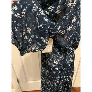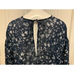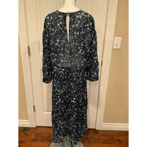 Free People Navy Blue Dress W/ White Floral Pattern & Rear Key Hole, Size Small