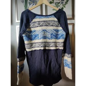 Free People Navy Blue Nordic Knit Thermal Sweater Size M
