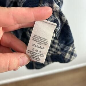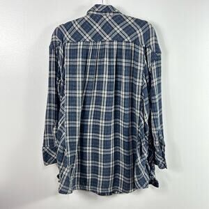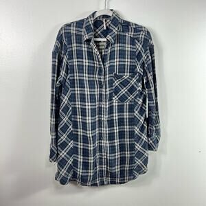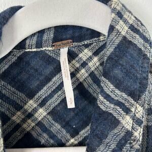 Free People Navy Blue Plaid Nordic Day Tie Hem Button Front Shirt Size Small