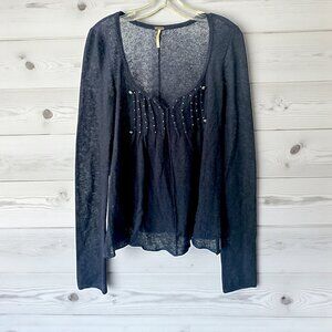 Free People Navy Blue Sequin Embellished Long Sleeve Top Boho Party Small
