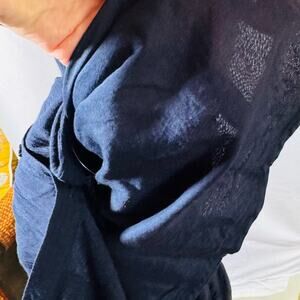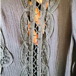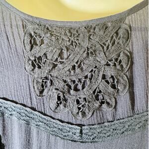 Free People Navy Boho Cottage Core Teared Lace Hi Low Maxi Dress Bell Sleeve 2