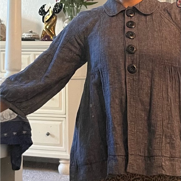 Free People Navy Button-Up Blouse