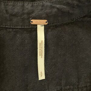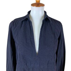 Free People Navy Linen Cotton Blend Deep V Pullover Top Small
