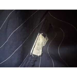Free People Navy Pinstripe Ruffle Sleeve Button-Up Shirt L Cotton Blend