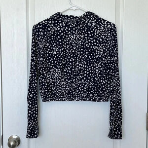 Free People Navy Printed Button Down Crop Top Blue White Size XS