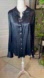 Chic navy satin shirt with button-down front. Long sleeves and classic collar. Perfect for stylish occasions.