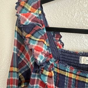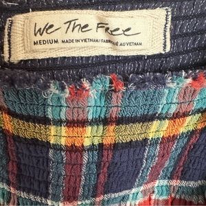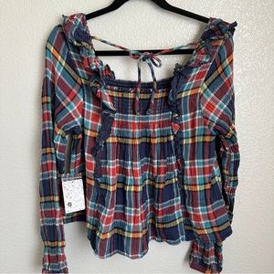 Free People Navy Sienna Plaid Long Sleeve Top Sz Medium