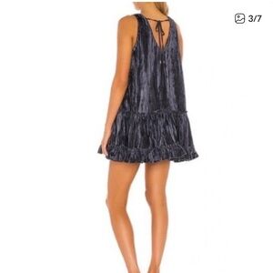 Elegant navy swing dress with luxurious textured velvet fabric. Designed by Free People. Perfect for special occasion, date night, company holiday parties, weddings!