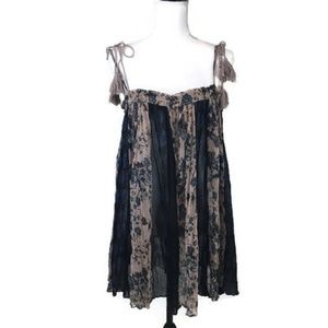 Free People Navy and Beige Floral Tunic