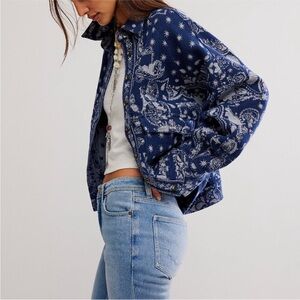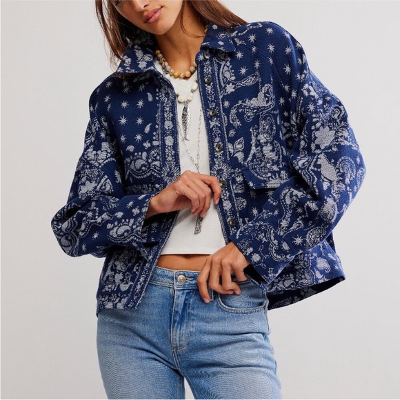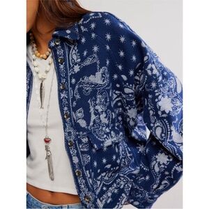Free People Navy and White Cotton Jacket