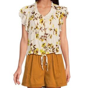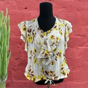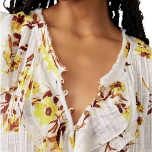 Free People Naya Handprinted Cotton and Viscose Bohemian Top with raw edges XS