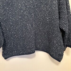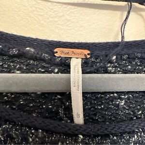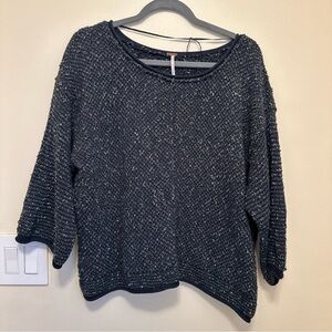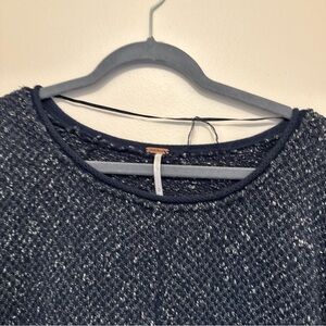 Free People Neck Knit Sweater Woman's L Blue & Speckled White 3/4 Sleeve