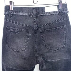 Free People Neon Blonde Black Siren Mom Fit High Rise Distressed Jeans 26