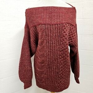 Stay cozy and stylish with this off-shoulder burgundy sweater. Perfect for any casual outing.