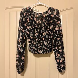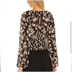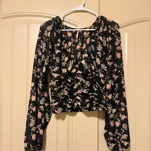 A true outfit completer, this sweet top is featured in a gorgeous floral fabrication with ruched, fitted bodice and exaggerated sleeves for added shape.