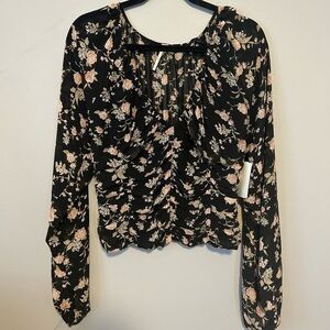 Free People New Final Rose Blouse in Black Combo Smocked Back Size Medium