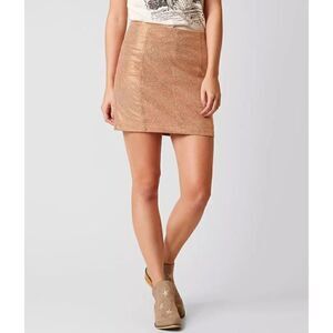 Free People New Modern Femme Metallic Rose Gold Faux Suede Mini Skirt, Size 0