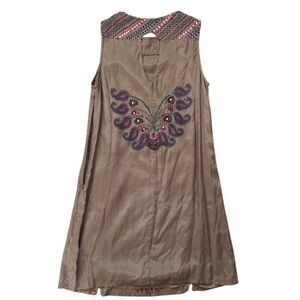 sold out everywhere FP New Romantics Gujakat Goddess Mini Dress in Olive, blue pink and teal embroidery, mirror sequin accents, keyhole back, and zipper side Contents 100% viscose Care Hand wash cold.