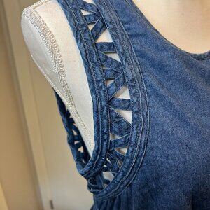 Free People New Romantics Highland Lattice Denim Mini Dress, Size 12