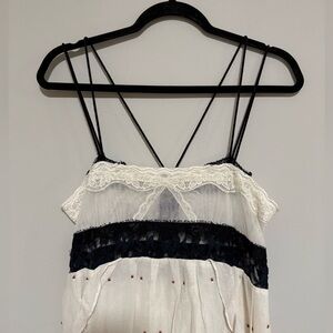 Free People New Romantics Ivory Boho Embroidered Lace Midi Dress Size 6