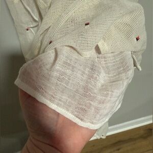 No holes or stains—there is a small spot where the lace has separated along the back (see last picture)