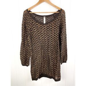 Free People New Romantics Joan of Arc knit tunic dress sweater copper thread XS