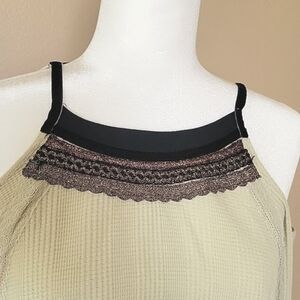 EUC Free People New Romantics mint green waffle knit cold shoulder blouse with lace trim and sparkle detailing at the neck and back