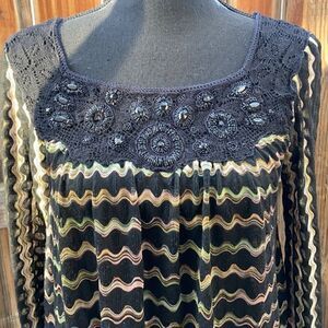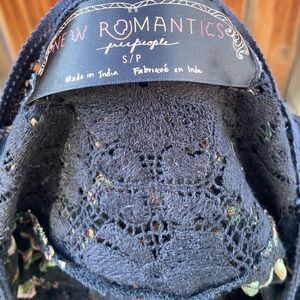 Free People New Romantics top long sleeve lace gold beading black sheer Small