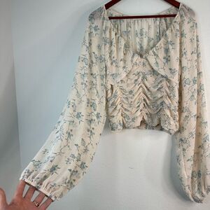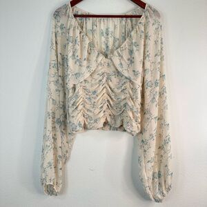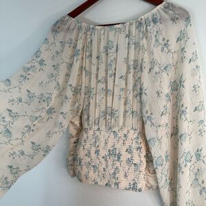 Item: Free People New Rose Floral Boho Blouse Womens Large Feminine CottageCore