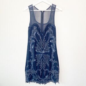 Free People New Times Ice Ice Baby Blue Gray Beaded Mesh Dress Sz S